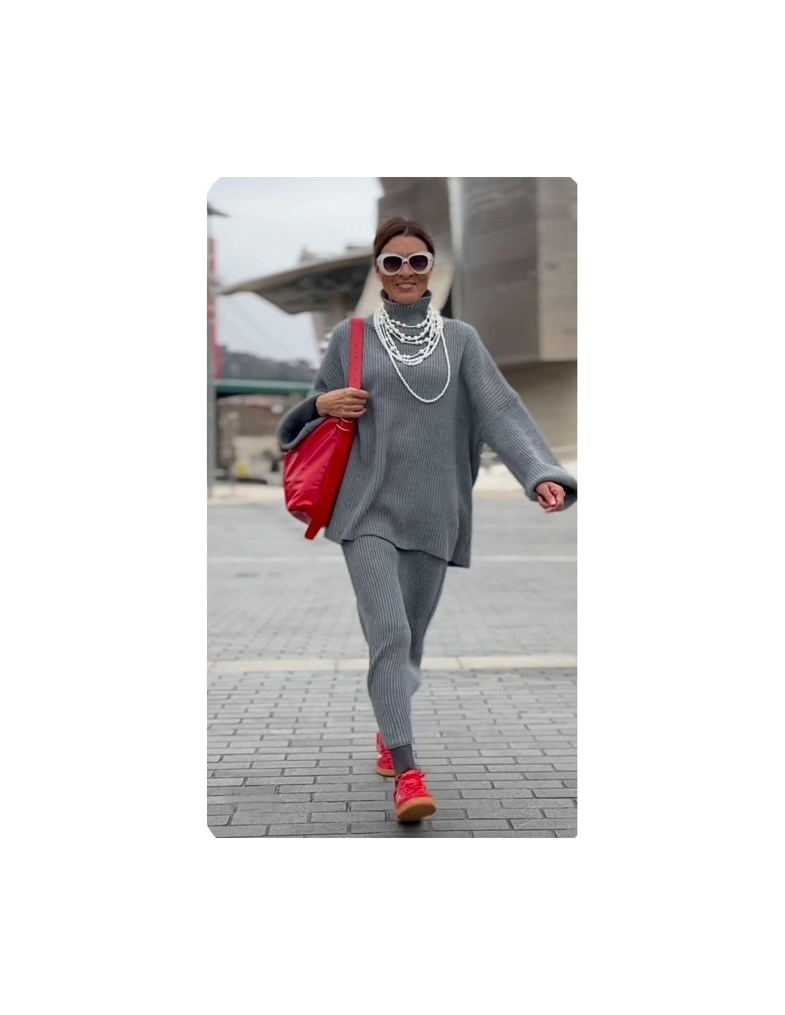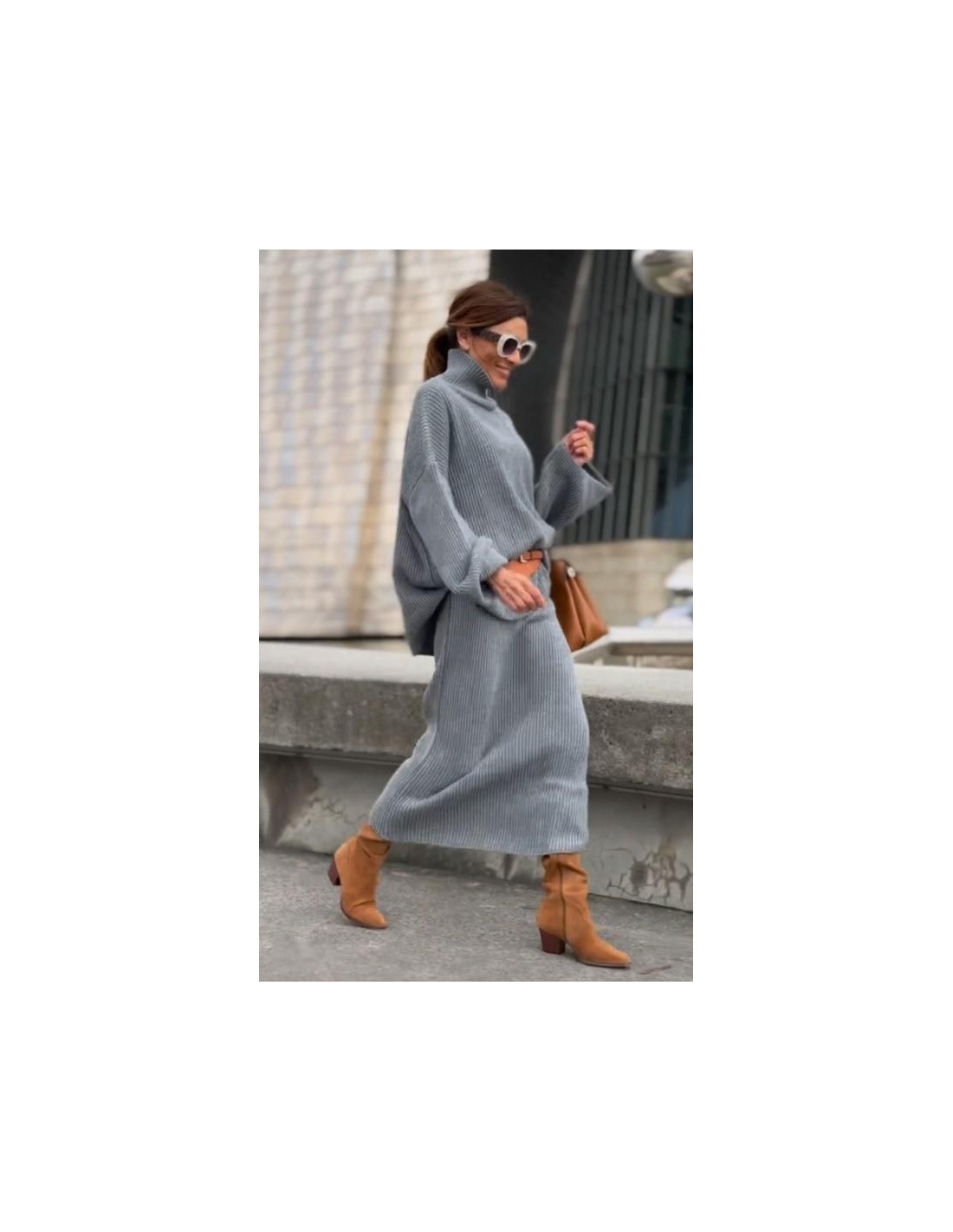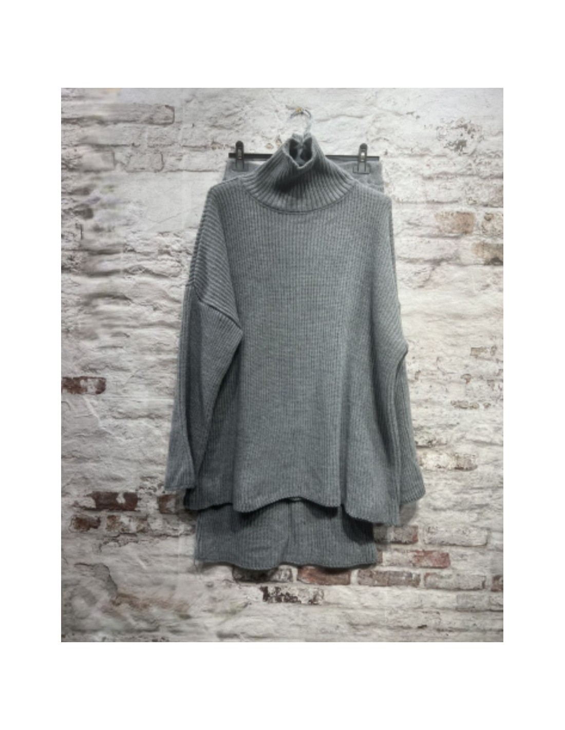 Conjunto de falda y jersey oversize de punto.