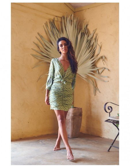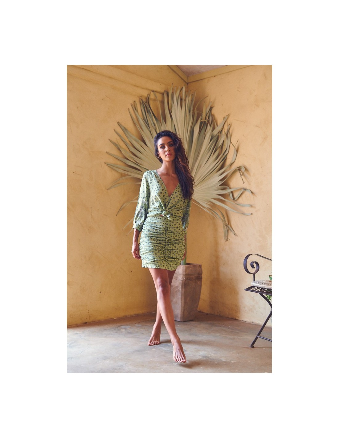 Falda corta drapeada con cremallera en un lado para ponerla con facilidad.